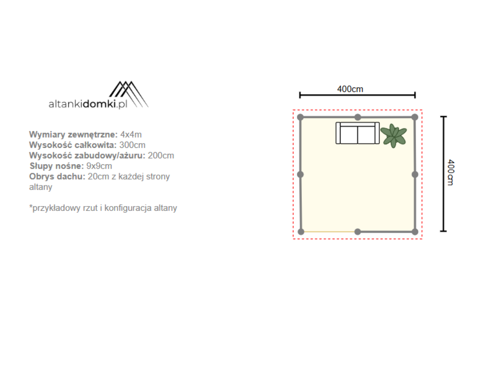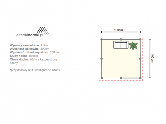 | Wymiary zewnętrzne | 4x4m po obrysie podstawy |