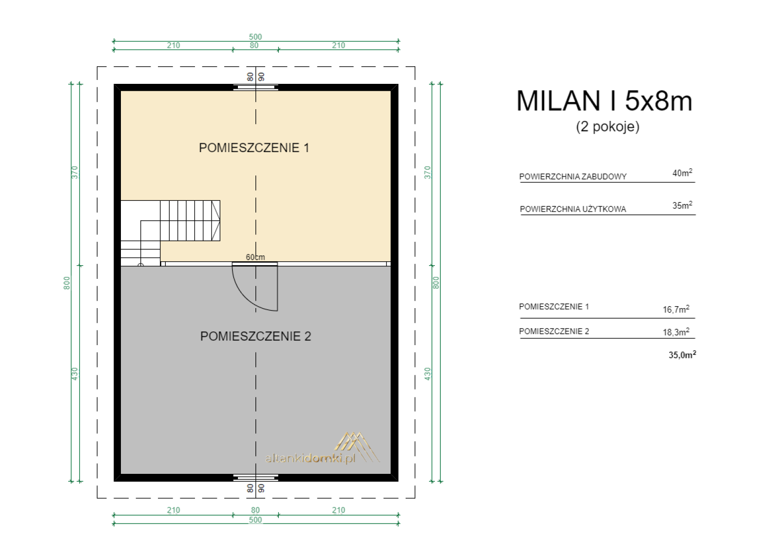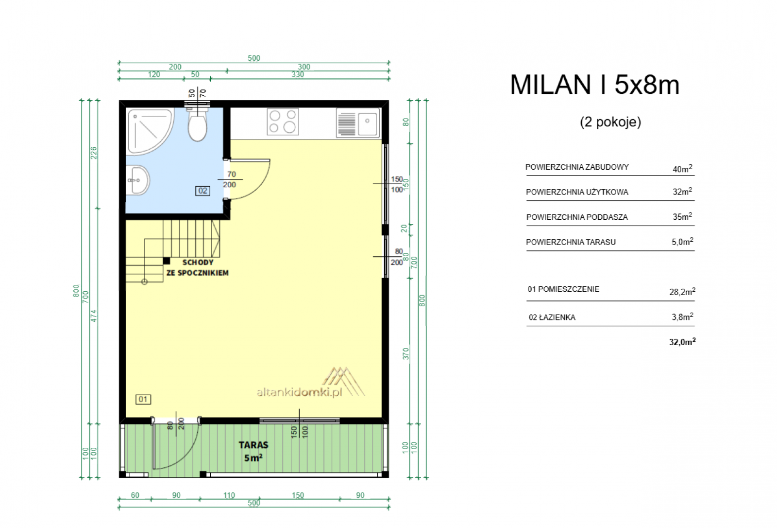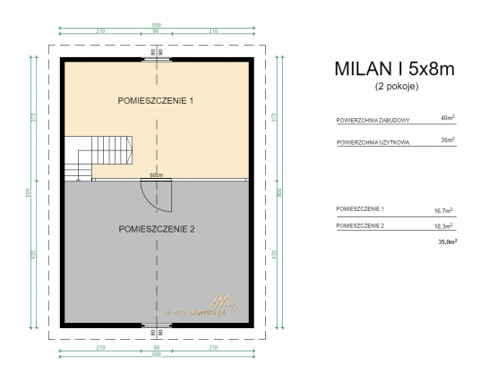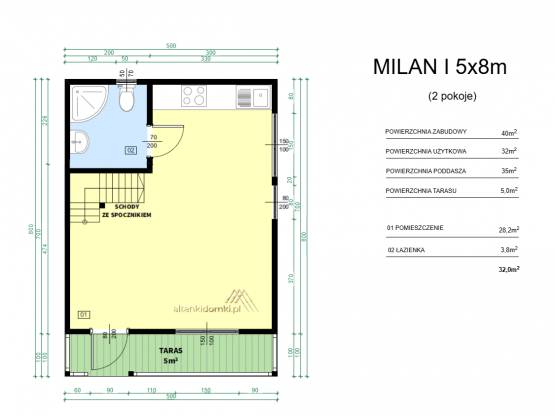 | Poddasze | 8x5m |
