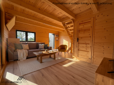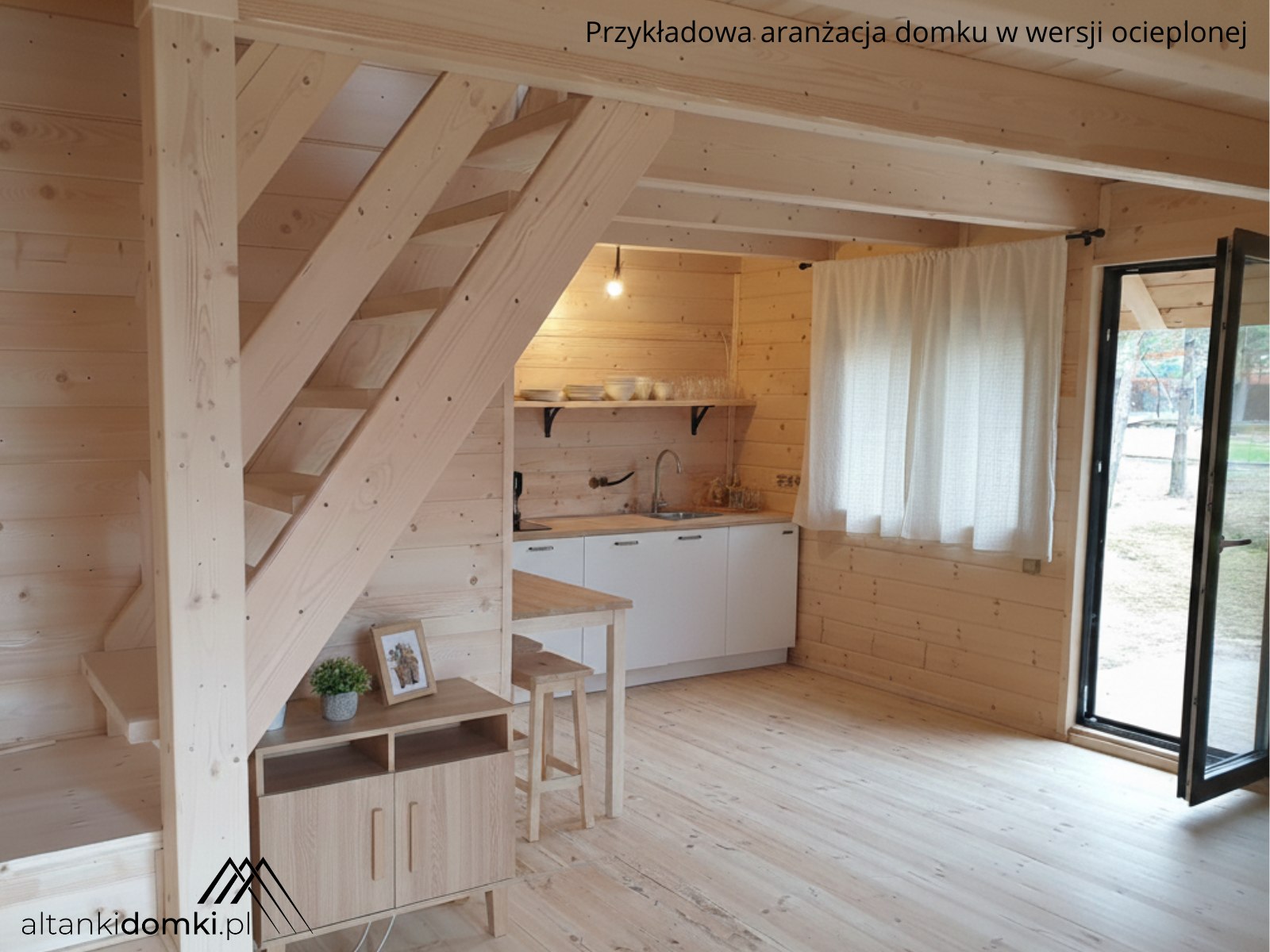 Dzięki 10-centymetrowej warstwie wełny, domek jest dobrze ocieplony, co sprawia, że wewnątrz panuje przyjemna temperatura przez cały rok. Dzięki temu, można w nim mieszkać niezależnie od pory roku, co jest ogromnym komfortem dla właścicieli.