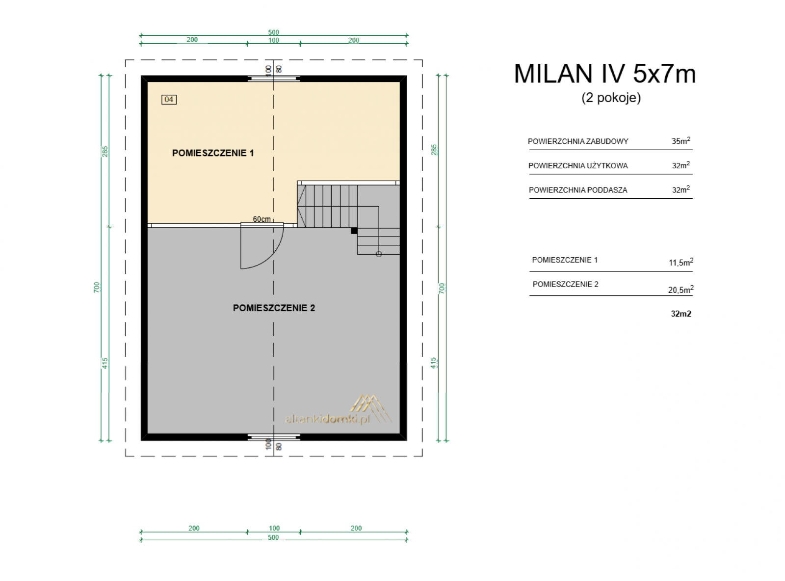 | Poddasze | 7x5 m |
