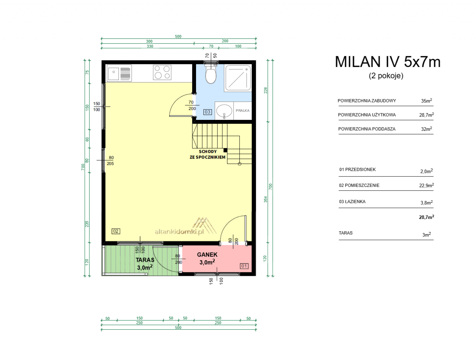 | Wymiary zewnętrzne | 5x7m po obrysie podstawy |