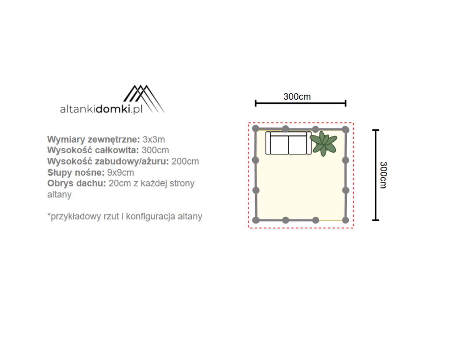 | Wymiary zewnętrzne | 3x3m po obrysie podstawy |