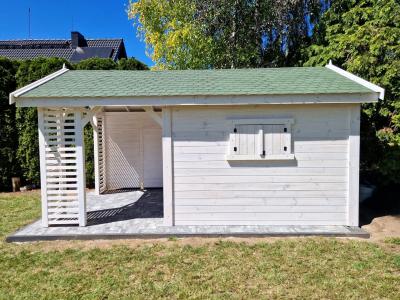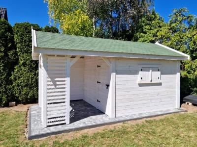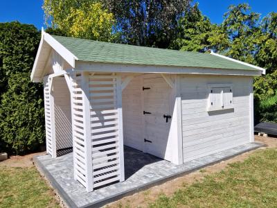 | Pomieszczenia | domek 3x3m, drewutnia 3x1,5m |