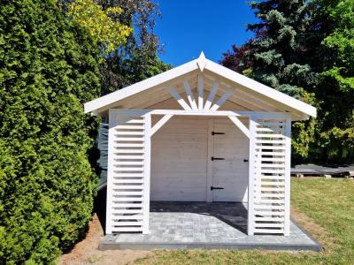 Drewniany domek narzędziowy Kamil 3x4,5 m to praktyczne i eleganckie rozwiązanie dla każdego ogrodu. Wykonany z naturalnego drewna świerkowego, stanowi idealne miejsce na przechowywanie narzędzi, sprzętu ogrodowego, rowerów czy mebli sezonowych. Solidna konstrukcja i klasyczny design sprawiają, że domek doskonale komponuje się z zieloną przestrzenią, tworząc harmonijną całość.