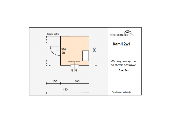 | Wymiary zewnętrzne | 3x4,5m po obrysie podstawy |