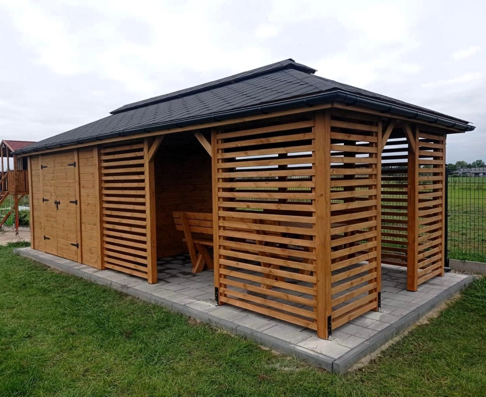 Model Pawełek 2w1 w wymiarze 3x7 m zapewnia dużo miejsca zarówno na przechowywanie narzędzi ogrodniczych, rowerów czy sprzętu rekreacyjnego, jak i na relaks w altanie, która idealnie sprawdzi się podczas spotkań z rodziną i przyjaciółmi.