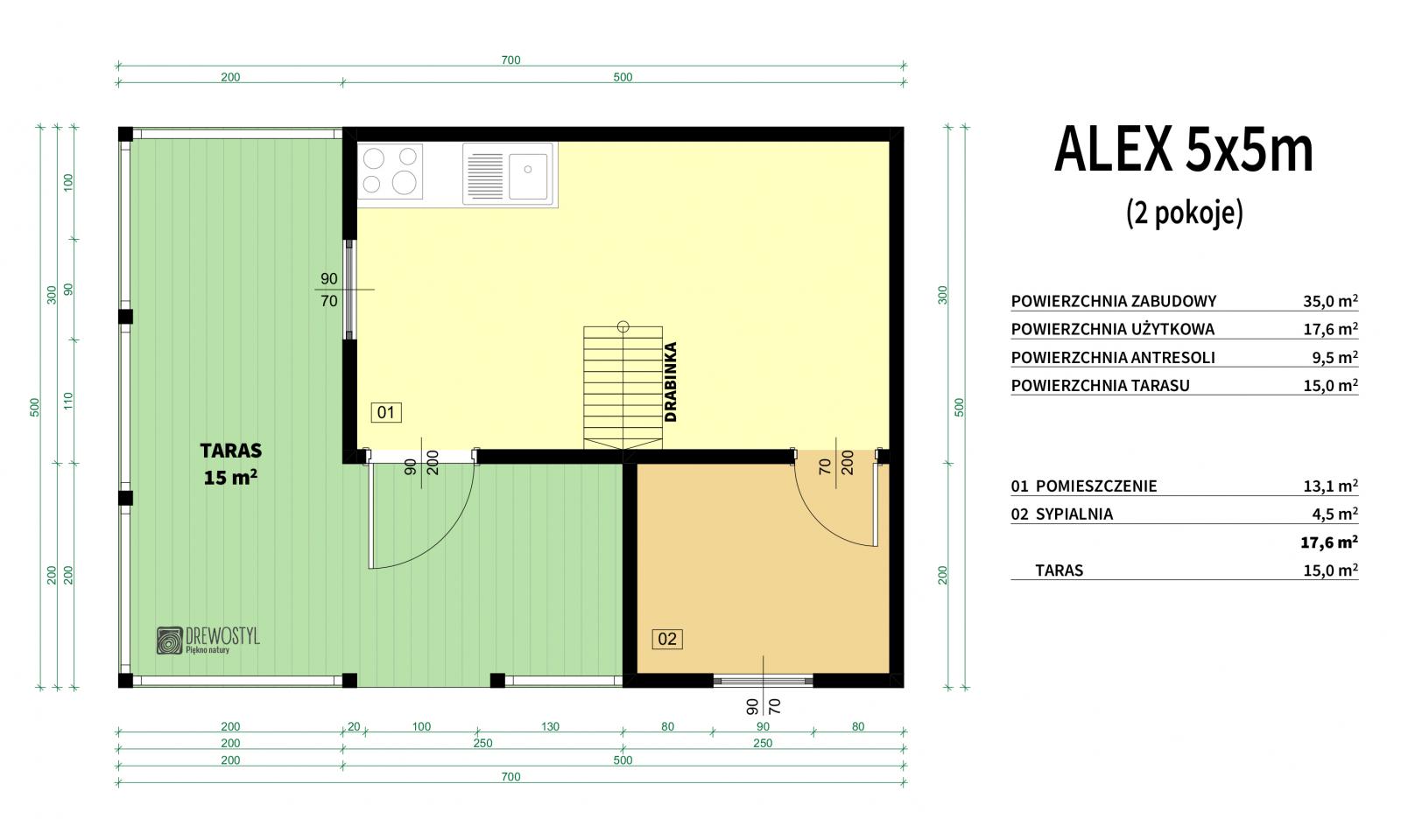 | Wymiary zewnętrzne | 5x7m po obrysie podstawy |