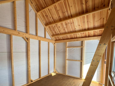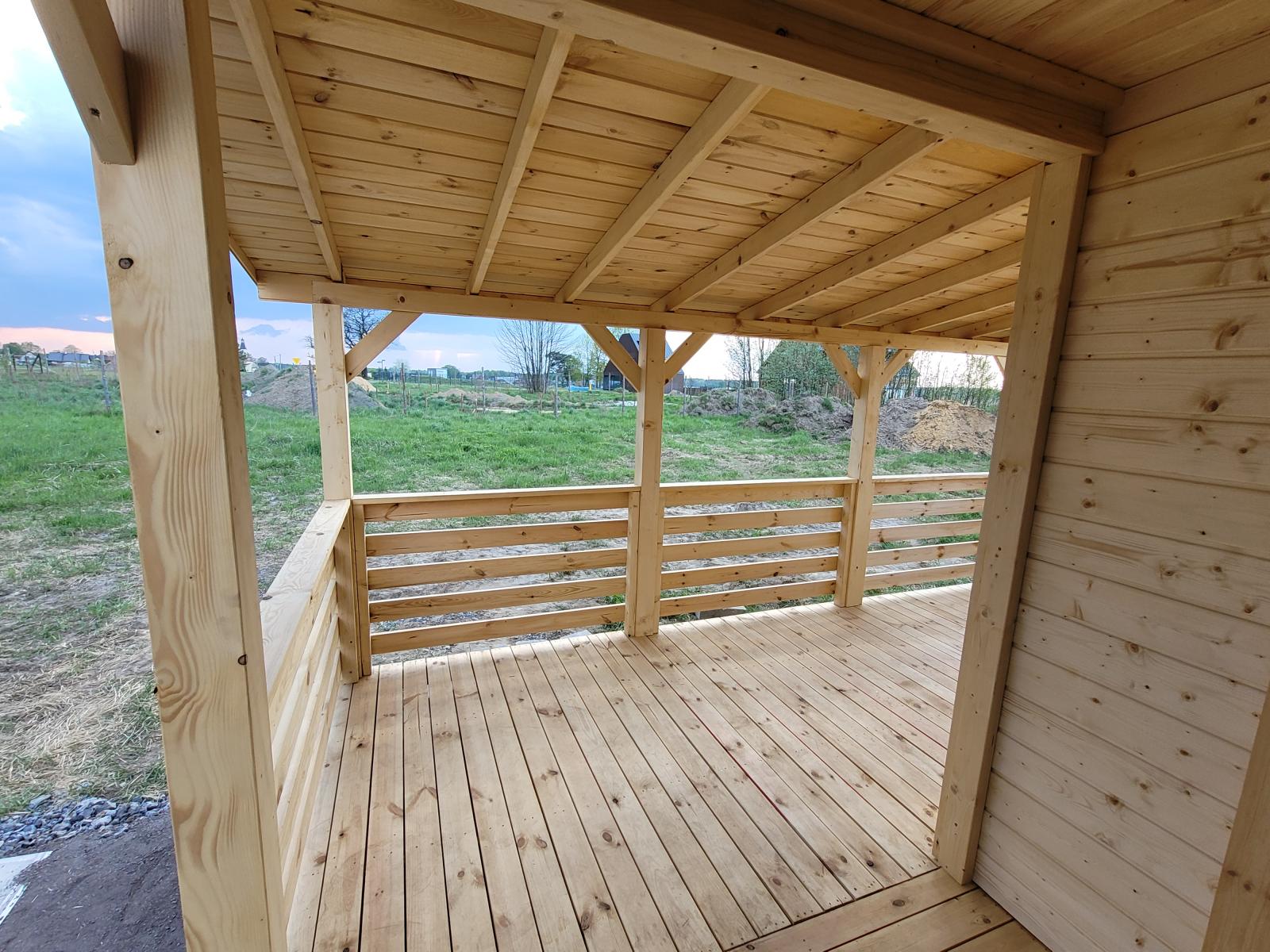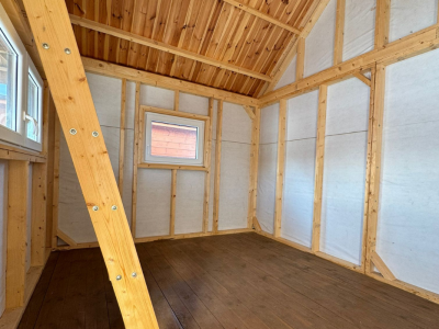 | Konstrukcja | wykonana w technologii szkieletowej (kanadyjskiej) z kantówki 45x95mm, ściany zabezpieczone folią wiatroizolacyjną |