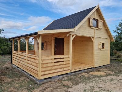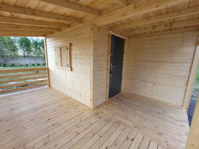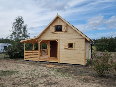 Wykonany z wysokiej jakości drewna świerkowego, nasz domek rekreacyjny to inwestycja w jakość Twojego wolnego czasu, idealny jako domek na działkę Rod lub baza wypadowa na weekendy. Sercem tego projektu jest imponujący, przestronny taras 5x5 metra (25 m²), który stanowi idealne przedłużenie salonu i strefę relaksu na świeżym powietrzu, gotową pomieścić duży zestaw wypoczynkowy oraz stół biesiadny.